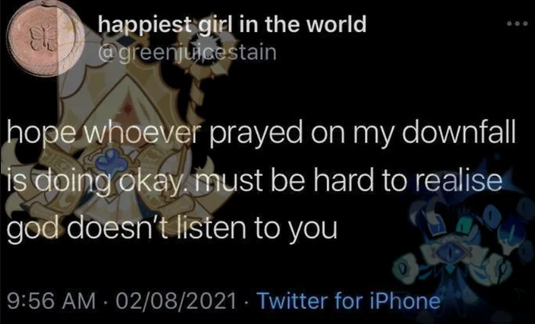 that said!!!! apologises in advance for all her rudeness. she tries incredibly hard to be mean but she's 90% hot air. prick her with a needle and she deflates so fast. unless, idk, you want to debate her research in which she will die on her hill and so will we.